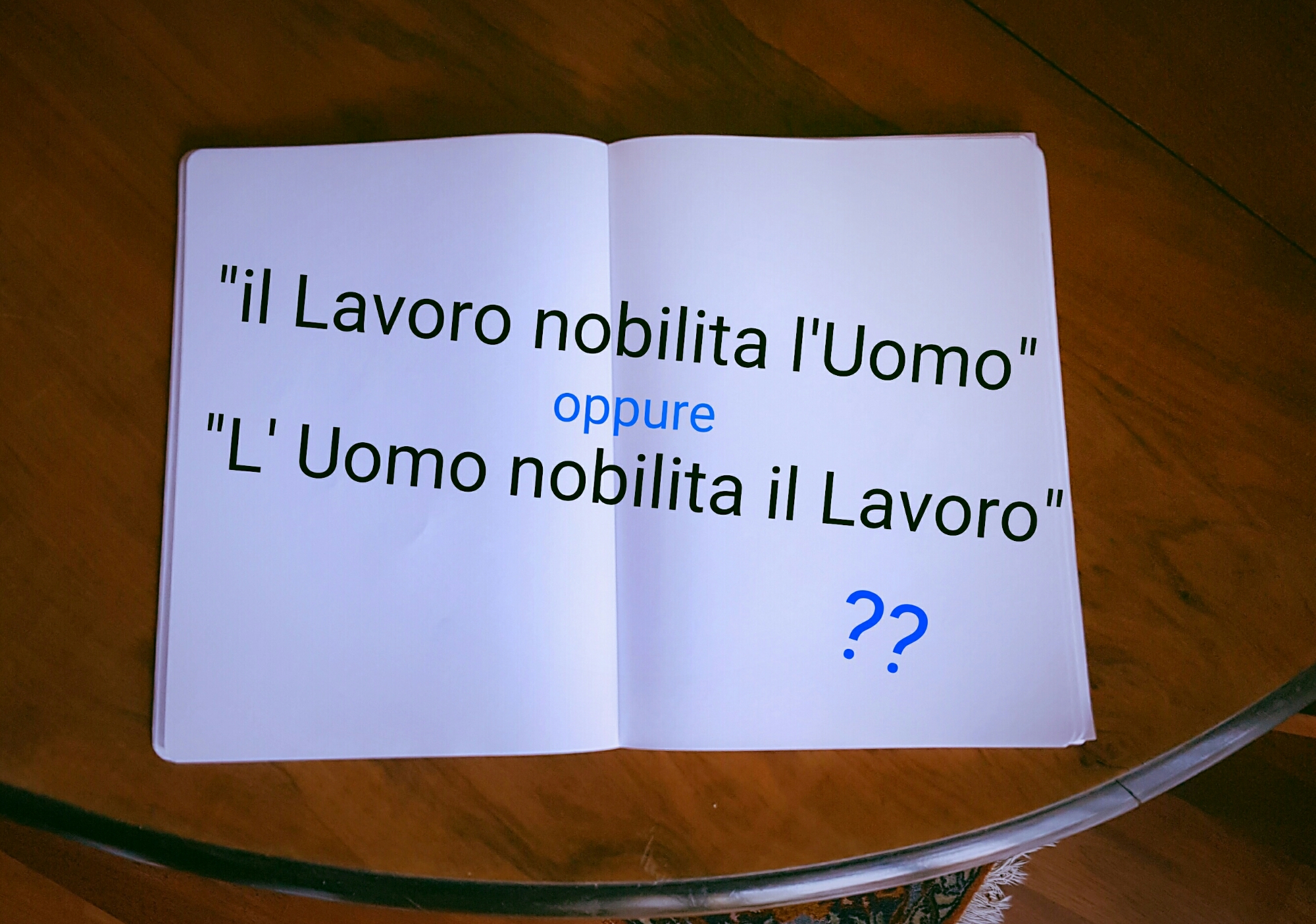 Parlando con mio padre al telefono di come lui per anni ha svolto il suo lavoro, con tante responsabilità e attività da seguire, a cui non sono mancati i riconoscimenti sia dalle persone che lavoravano con lui e per lui, ma anche da persone che lo stimano per ciò che ha dato alla città in cui abita a livello sociale e lavorativo, mi sono chiesta ma davvero “il lavoro nobilita l’uomo”? Forse sì, ma in alcuni casi “è l’uomo a nobilitare il lavoro”.