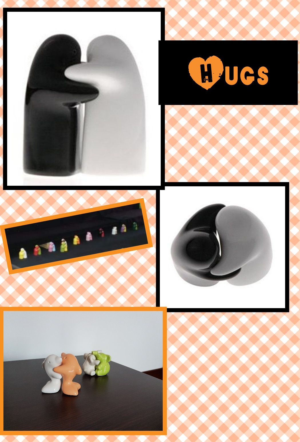 Sedici anni fa come domani (10 gennaio), dopo cena, all’uscita dal ristorante romano al ‘Ghetto’ dove ero stata romanticamente invitata sono stata stretta in un forte abbraccio da un bellissimo ragazzo che mi faceva battere il cuore già da tempo… ricordo che andavamo verso la macchina e camminando l’uno accanto all’altra mi fermò dalla mano e si mise davanti a me, incrociò prima le sue dita con le mie e poi mi abbracciò forte, era il momento giusto per svenire! (non sarei potuta cadere per terra per quanto eravamo abbracciati), staccando le guance ci siamo trovati occhi negli occhi e in qiel momento arrivò anche il primo bacio…quella fu sì la sera del nostro primo bacio ma soprattutto del nostro primo abbraccio! Forse inconsciamente legato a quel ricordo, quando dovevamo scegliere la bomboniera del nostro matrimonio, ho sponsorizzato moltissimo (e poi fu la scelta definitiva) due ‘omini’ che si abbracciano (sale e pepe), che poi in viaggio di nozze abbiamo ritrovato in versione colorata (mentre i nostri erano in bianco e nero) e negli anni successivi degli amici durante i loro viaggi hanno trovato (e ci hanno regalato) delle “varianti” con protagonisti degli animali.
