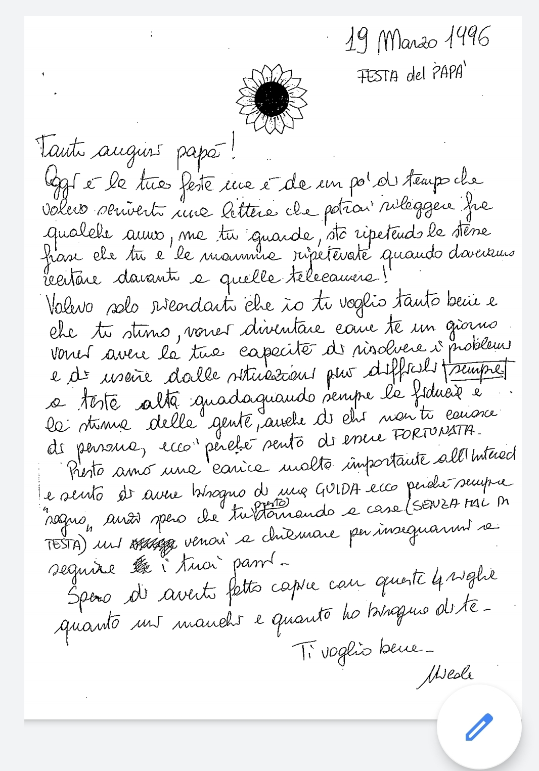 Quando ero piccola a scuola ci facevano fare dei lavoretti, era d’obbligo imparare una poesia a memoria e “di mio” ci mettevo ben poco se non l’entusiasmo di festeggiare TE, il mio Super Eroe. Poi crescendo ho dato un valore sempre più personale alla festa, più celebrativo da una parte ma anche più intimo… ed ecco che coglievo l’occasione per l’ennesima lettera scritta su carta da lettere.