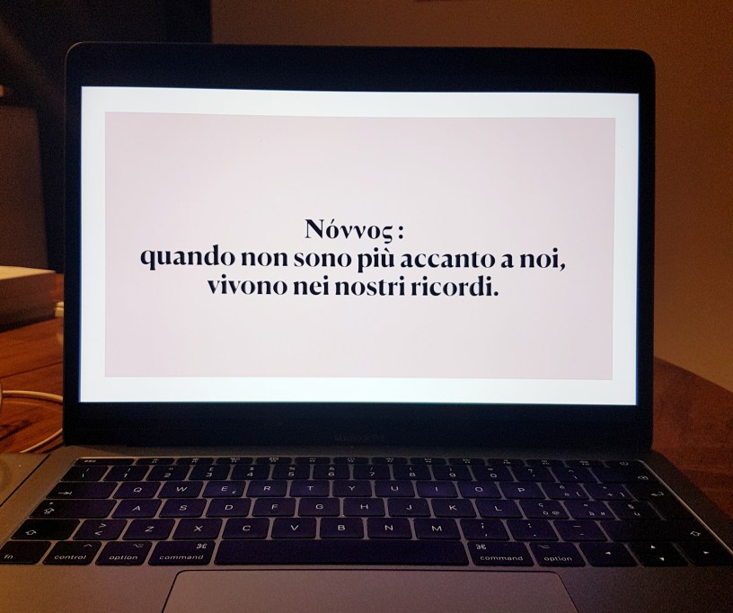 Non me ne capacito e allora cerco su internet un “perché” a questa assonanza, ma per fortuna trovo su Wikipedia che “Nonno” in realtà trova la sua origine nel greco antico: Νόννος, Nónnos, «venerabile, puro, santo». Ecco in questo trovo subito conforto.